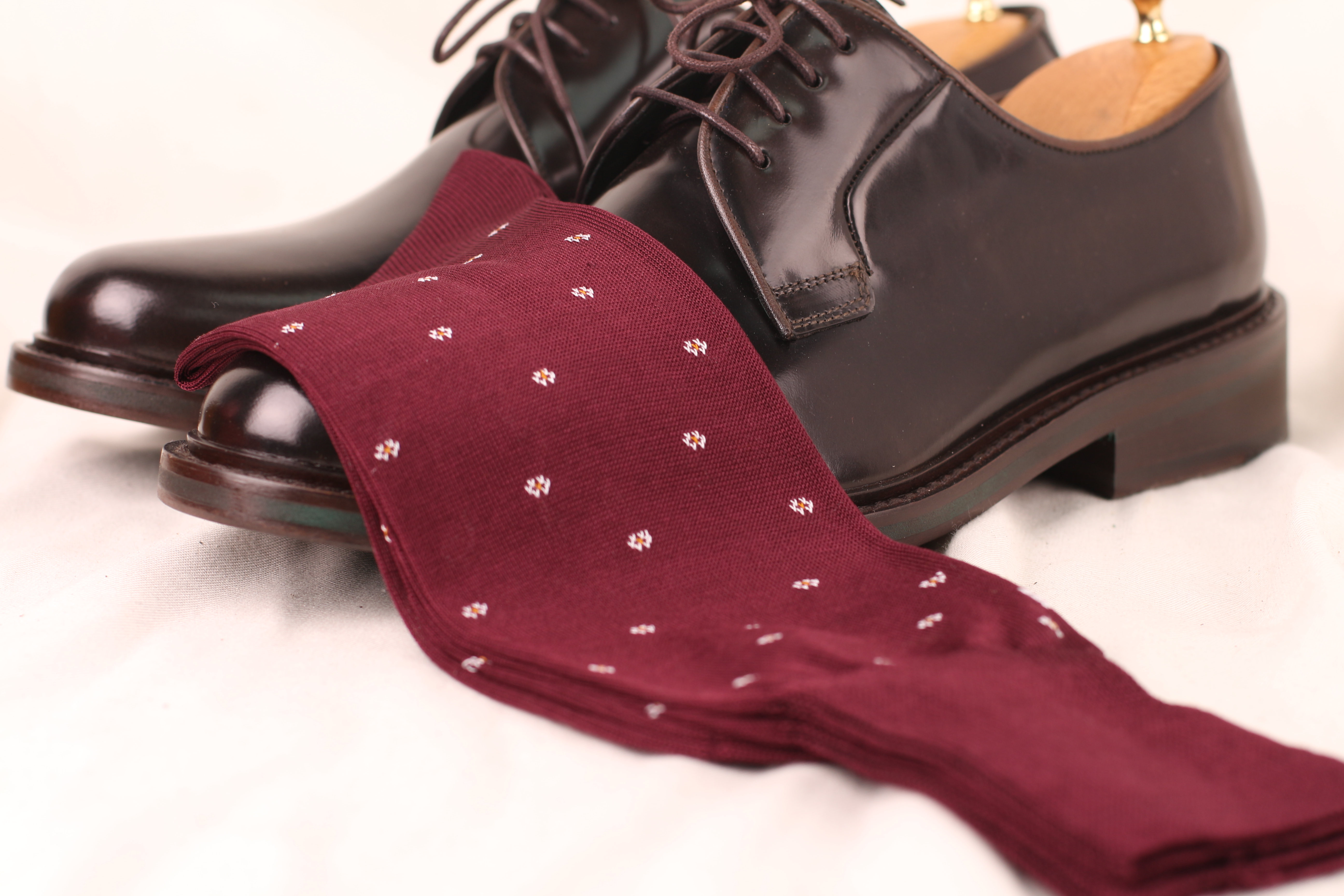 Flower Design Burgundy Cotton Socks