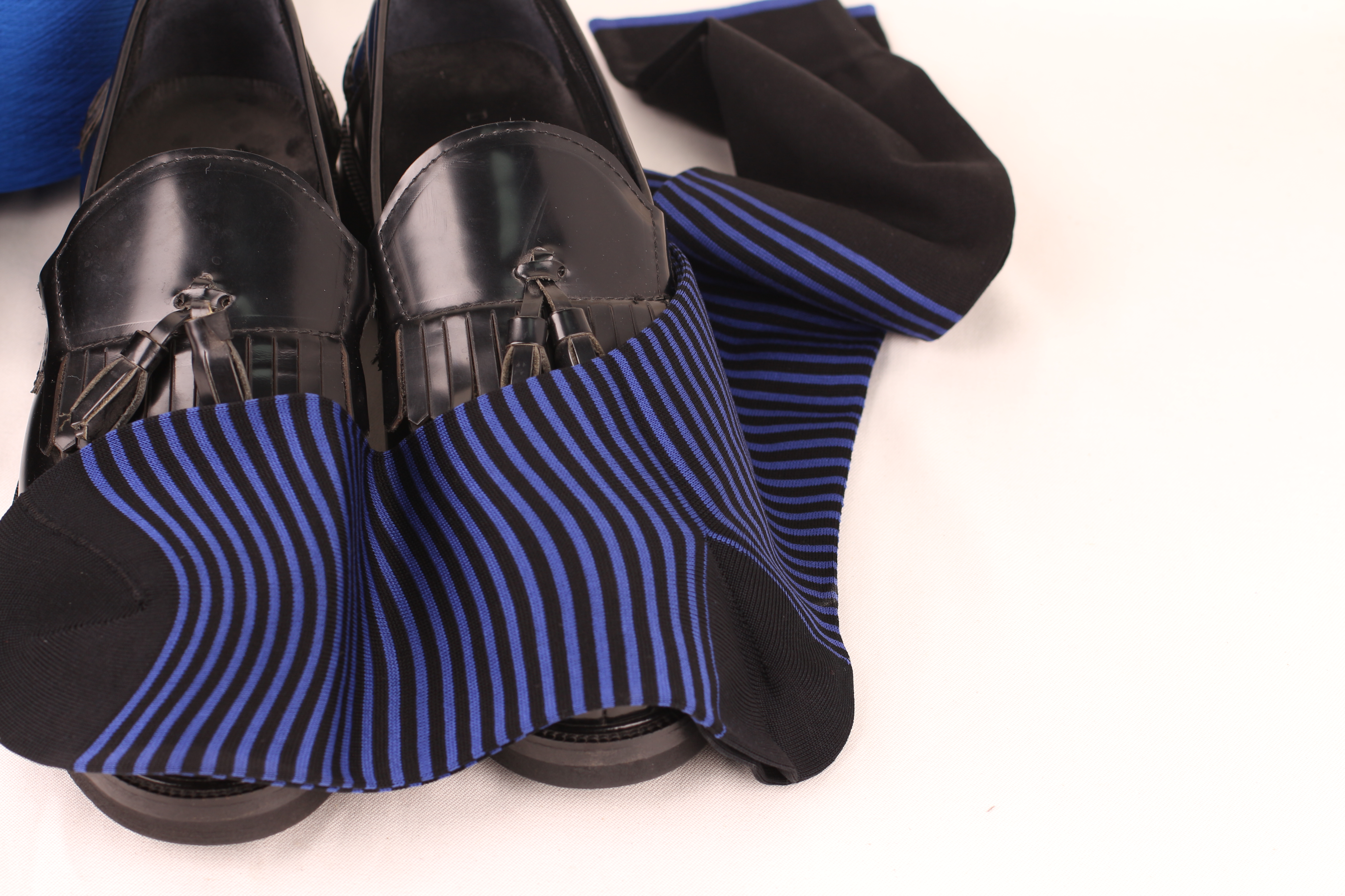 DRESS SOCKS DIAGONAL BLACK ROYAL BLUE OVER THE CALF BIRDSEYE