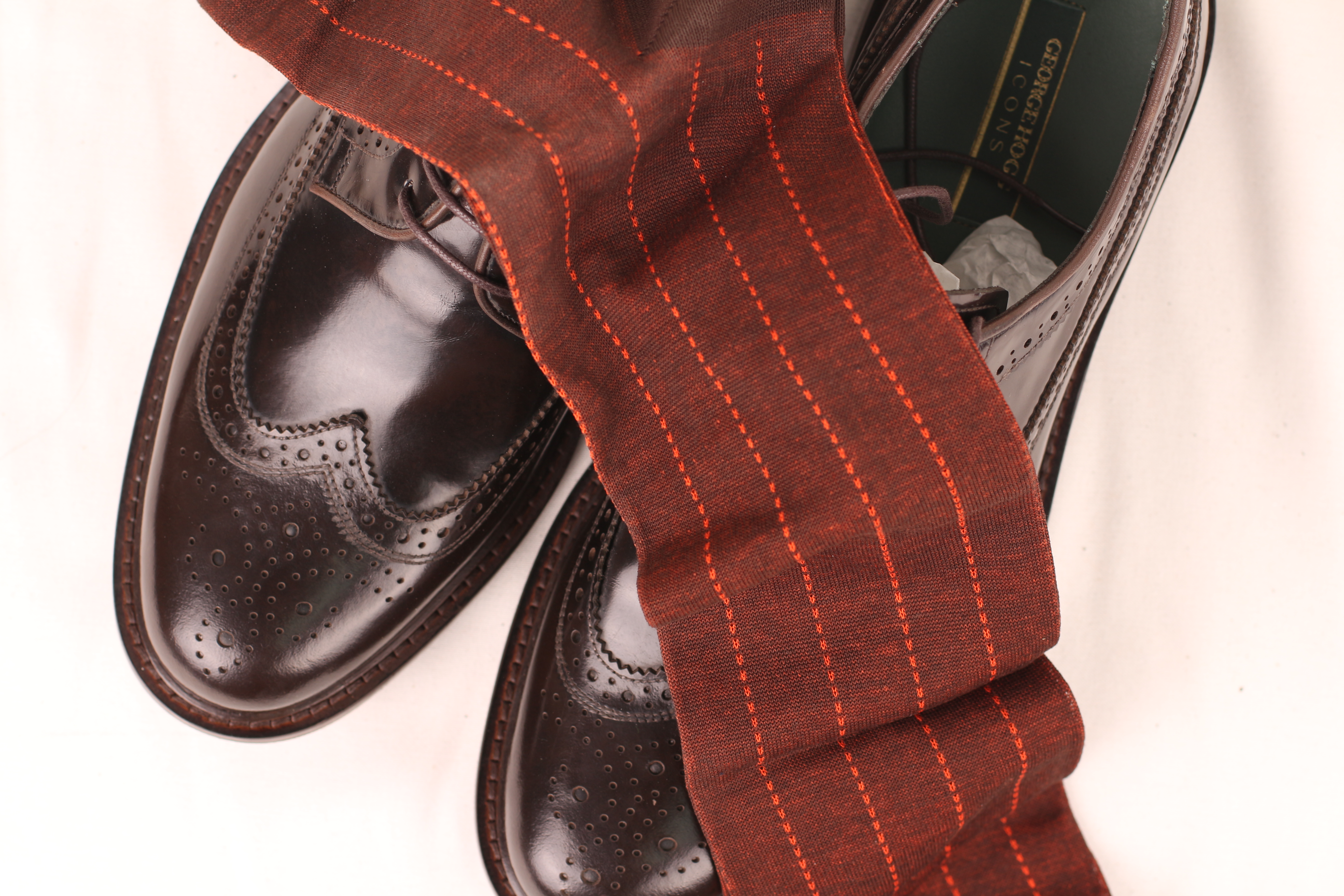BROWN ORANGE OVER THE CALF PIN STRIPE